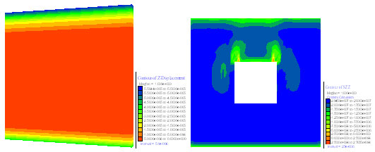 为开洞剪力墙应力均匀(开洞前)                  角部应力集中(加固前)