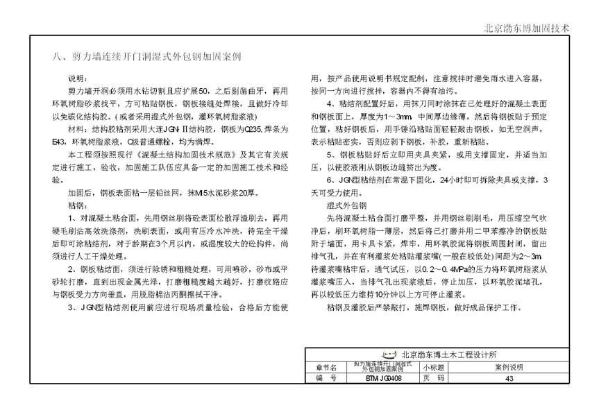 剪刀墙连续开门洞湿式外包钢加固案例